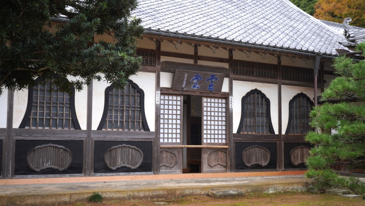 参道の向かって左側です。本堂の隣に、禅僧の修行場である雲堂(うんどう)があります。