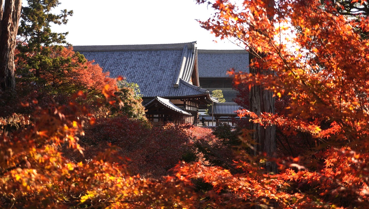 三門の一直線上に本堂(ほんどう)があります。東福寺の名は、奈良の東大寺と興福寺から1字ずついただいたのだとか。