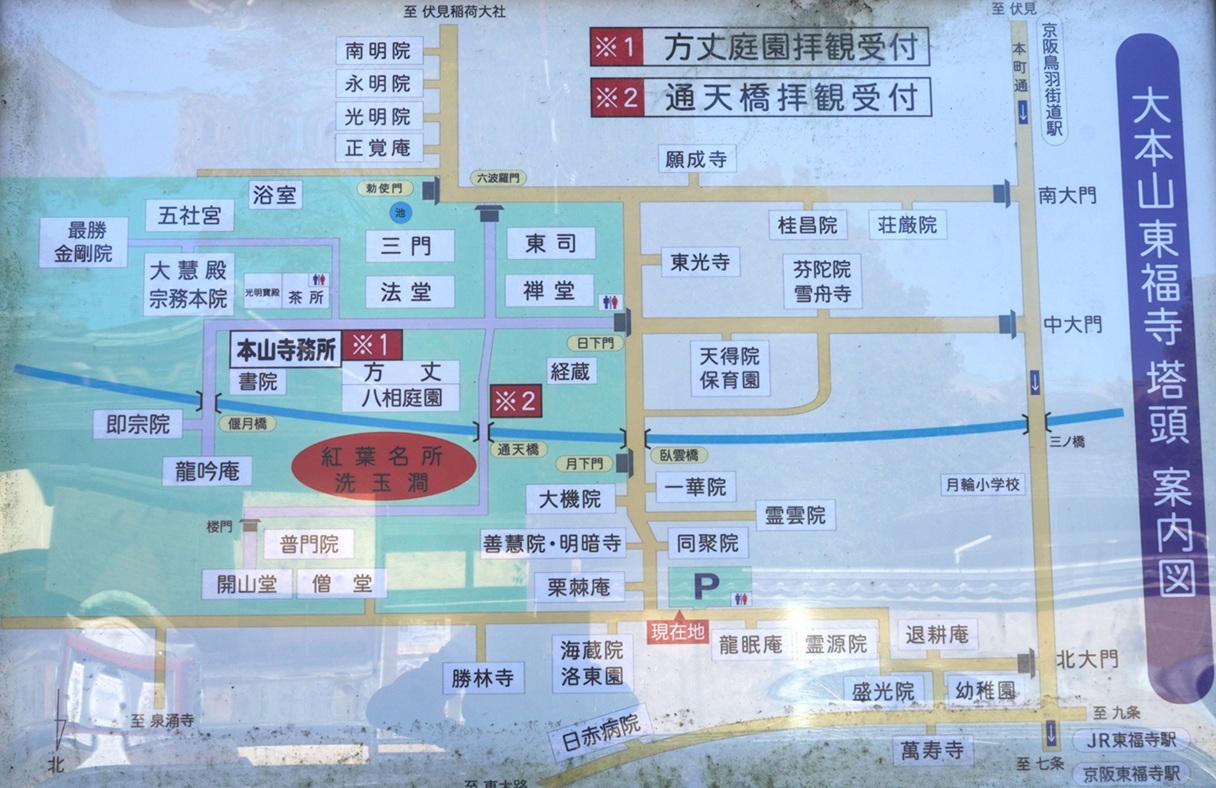JR東福寺駅から最も近い北大門(ほく だいもん)を正面から。