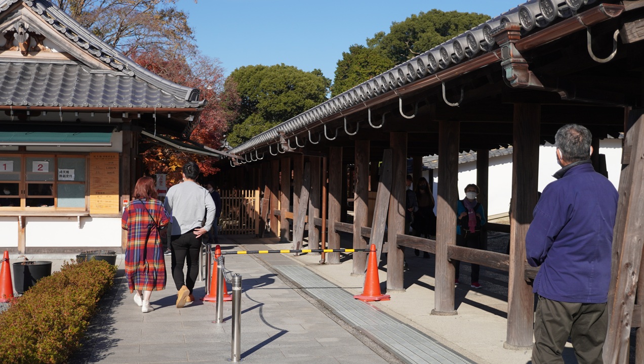 臥雲橋から少し歩いた所に、日下門(にちかもん)があります。JR駅から歩いて来た拝観者は、みんなこの門をくぐります。