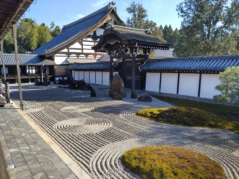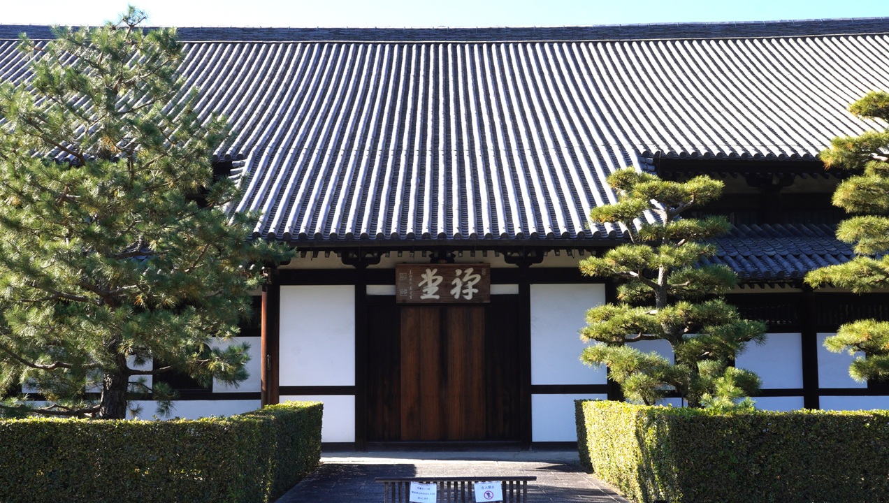 常楽庵・開山堂(かいざんどう)では、東福寺を開山した聖一国師・円爾弁円(しょういち こくし・えんに べんえん)禅師の御尊像が祀られています。撮影当時、左側の客殿(きゃくでん)は改修中でした。