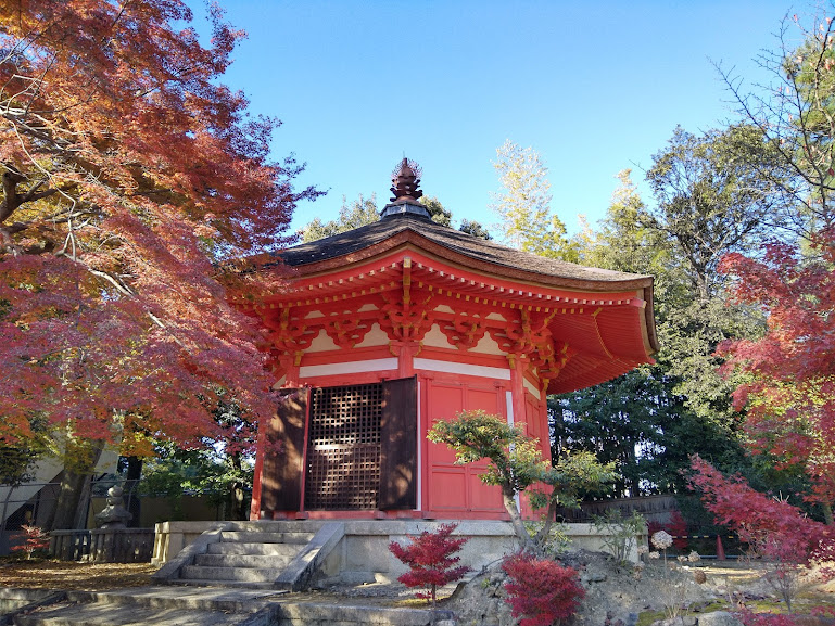 通天橋の近くにある愛染堂(あいぜんどう)では、愛染明王の尊像が安置されています。もとは東福寺・塔頭寺院の一つ、万寿寺(まんじゅじ)の愛染堂でしたが、1934年の台風で倒壊したので、この場所に移築・再建されました。